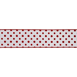 2.5 Inch X 10 Yard White With Red Dots Christmas Ribbon