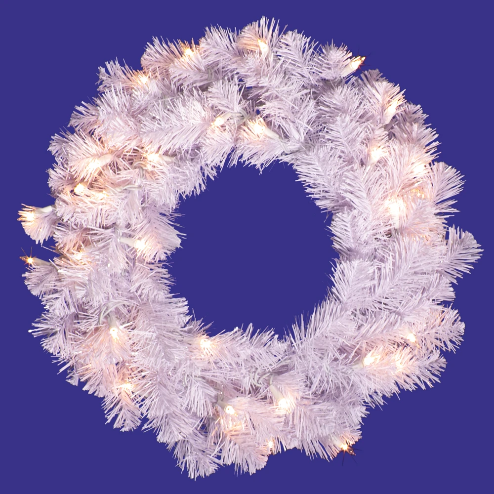 20 Inch Crystal White Wreath 50 LED Warm White Lights