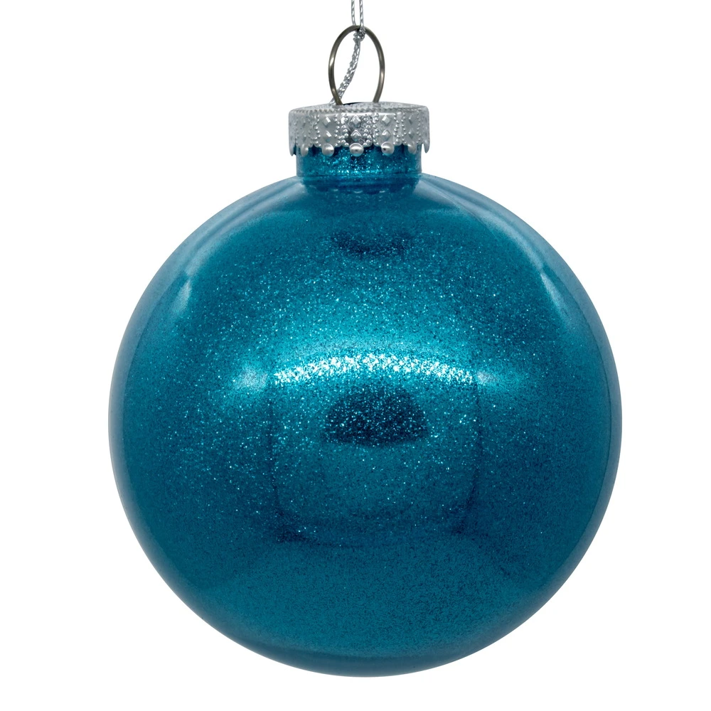 3 Inch Turquoise Glitter Clear Round Christmas Ball Ornament Shatterproof