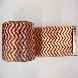 30 Foot Gold And Burgundy Chevron Lame Ribbon 2.5 Inch Width