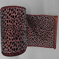 30 Foot Red Lame Velvet Black Leopard Ribbon 2.5 Inch Width