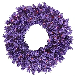 36 Inch Flocked Purple Artificial Halloween Wreath 100 Purple Lights
