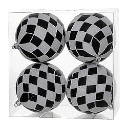 4.7 Inch Black And White Lime Diamond Glitter Round Shatterproof UV Christmas Ball Ornament 4 Per Set