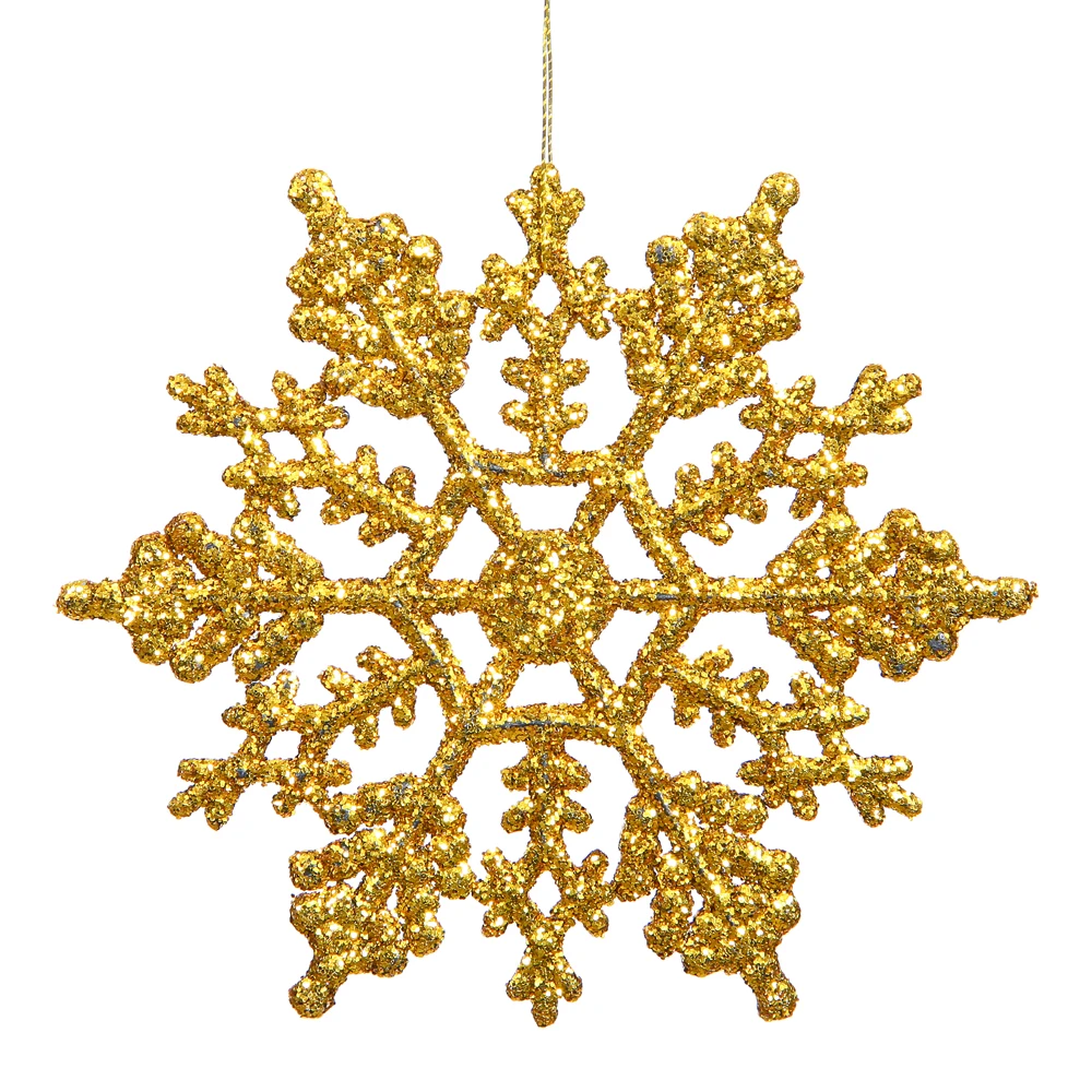 4 Inch Antique Gold Glitter Snowflake Christmas Ornament 2 Per Set4