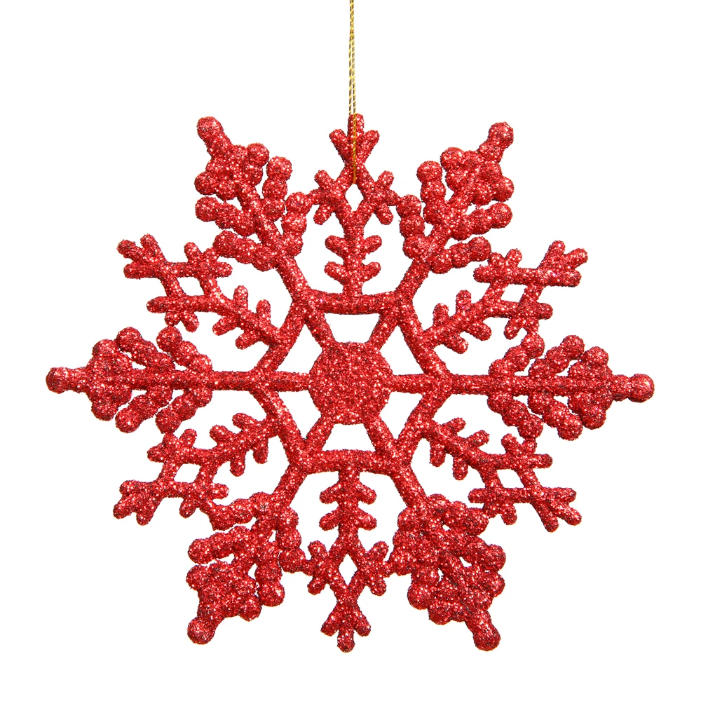 4 Inch Red Glitter Snowflake Christmas Ornament 2 Per Set4