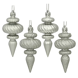 4 Inch Silver Christmas Finial Ornament Assorted Finishes Set Of 8 Shatterproof