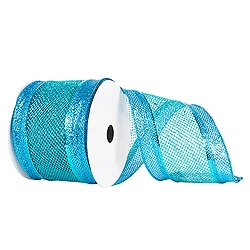 4 Inch X 10 Yard Blue Diamond Mesh Edged Christmas Ribbon