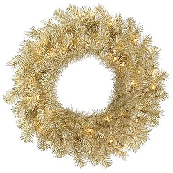 48 Inch White Gold Tinsel Wreath 100 Clear Lights