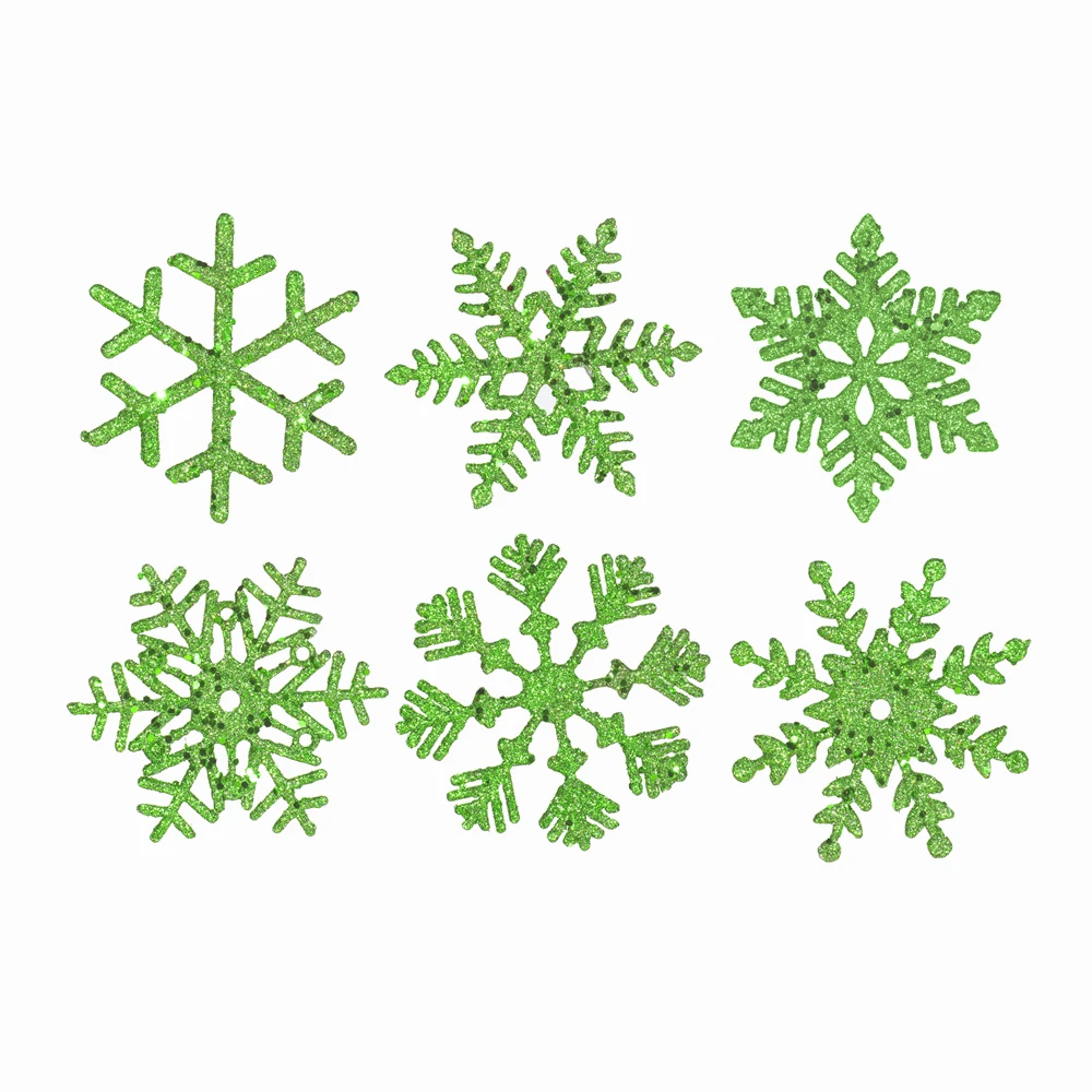 5 Inch Lime Glitter Snowflake Christmas Ornament 6 Per Set