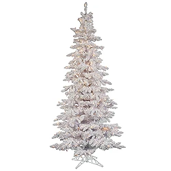 6.5 Foot Flocked White Slim Artificial Christmas Tree 300 DuraLit Clear Lights