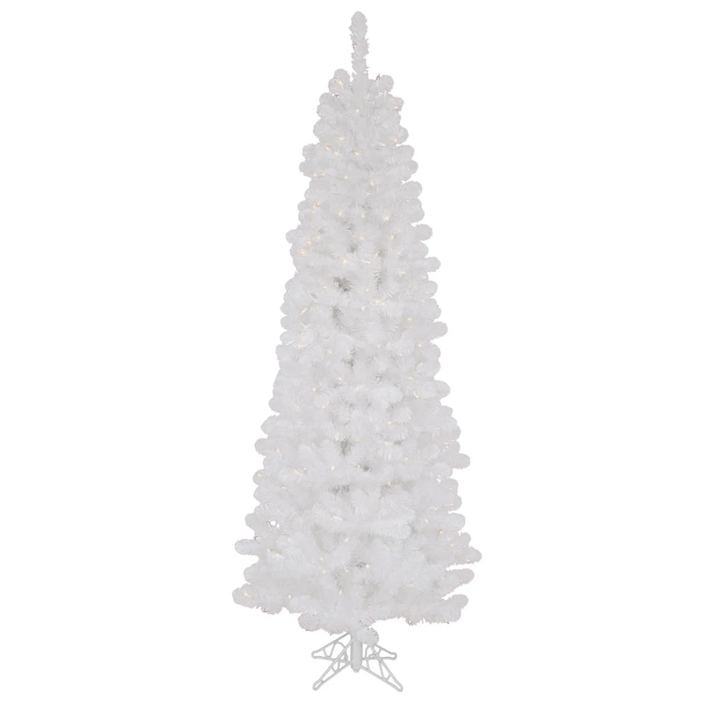 6.5 Foot White Salem Pencil Pine Artificial Christmas Tree 250 DuraLit Clear Lights