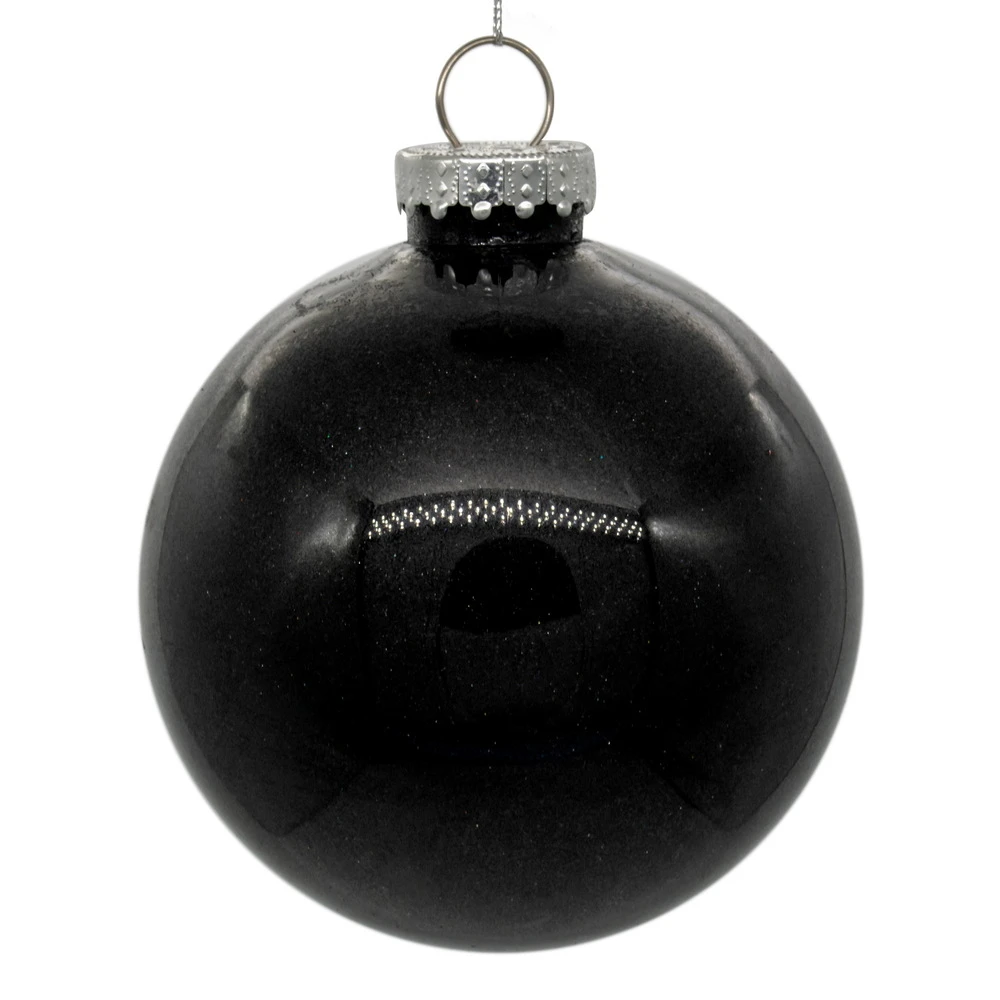 6 Inch Black Clear Glitter Round Christmas Ball Ornament Shatterproof