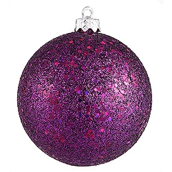 6 Inch Plum Sequin Round Shatterproof UV Christmas Ball Ornament 4 Per Set