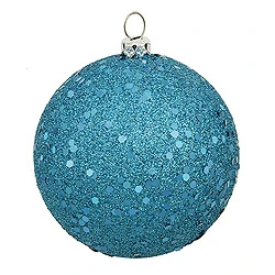 6 Inch Turquoise Sequin Round Shatterproof UV Christmas Ball Ornament 4 Per Set