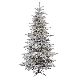 7.5 Foot Flocked Slim Sierra Artificial Christmas Tree 700 LED Multi Lights