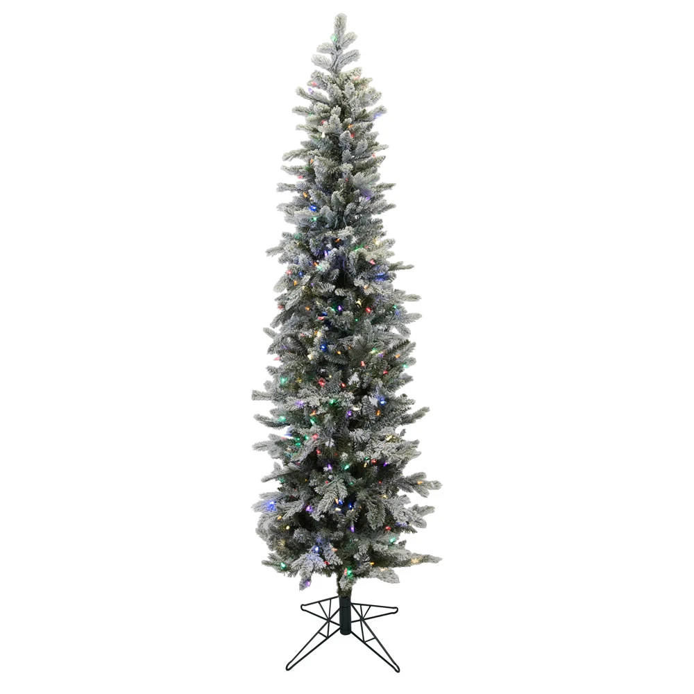 7 Foot Frosted Glitter Tannenbaum Pine Artificial Christmas Tree 300 Multi Colored LED Lights