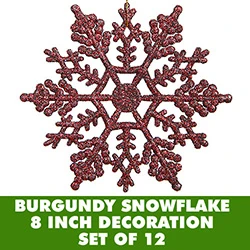 8 Inch Burgundy Glitter Snowflake 12 Per Set