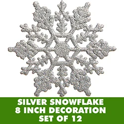 8 Inch Silver Glitter Snowflake Set Of 12